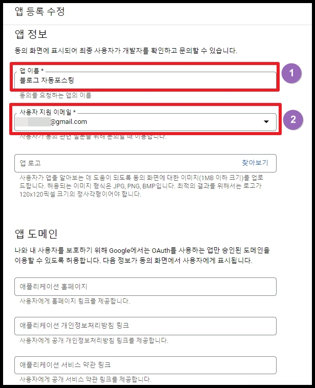 1) 앱이름은 자신이 알아보기 편한 이름으로 지으시면 됩니다.