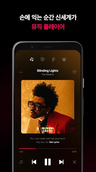 음악에 따라 실시간으로 바뀌는 LiveLyrics®를 확인하며 따라 불러보세요