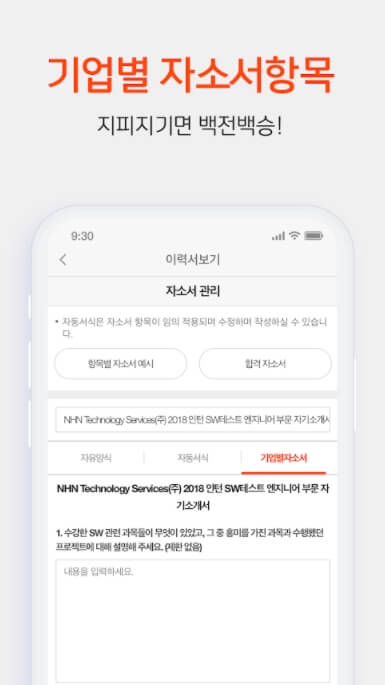 - 입사지원 전, 지원하고자 하는 각 채용공고에 맞는 특색 있는 자기소개서 작성이 가능합니다