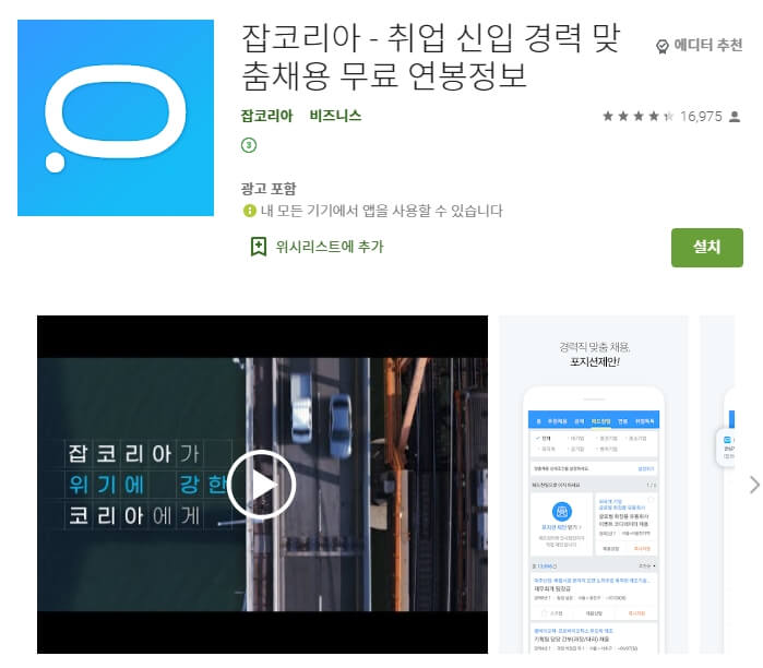 첫 번째 소개할 어플은 잡코리아 (취업 구인 구직) 어플입니다. 모바일로 입사지원을 하실 수가 있습니다. 이력서도 편리하게 작성하세요~ 아래는 잡코리아 (취업 구인 구직) 어플에 대한 자세한 설명이니 참고하세요~
