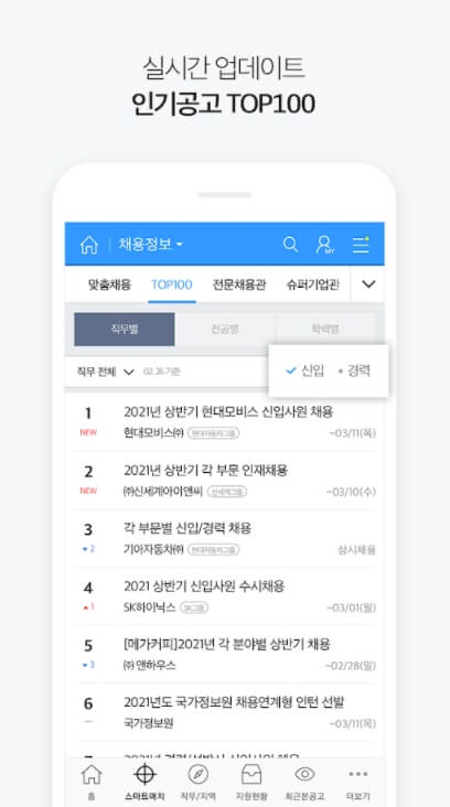- 대기업, 중소기업, 공기업, 공공기관, 외국계 기업 등 쉽고 빠른 취업정보.