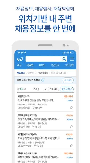 - 스마트폰 GPS를 활용한 내 주변 일자리 정보, 채용행사, 채용박람회 정보