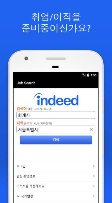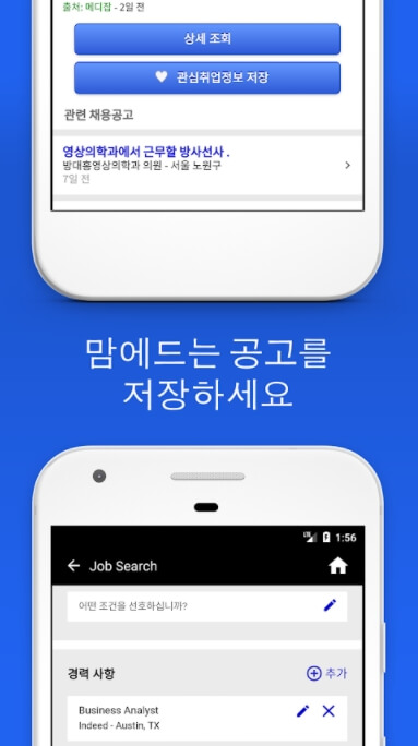 - 인디드의 데이터 베이스의 20백만 건 이상의 채용공고 검색이 제공됩니다