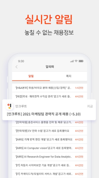 - 푸시 알람을 통한 빠른 실시간 채용정보 확인